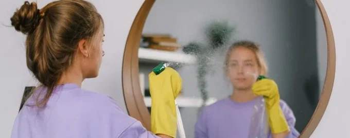 De sleutel tot een streeploze spiegel ligt niet in harder poetsen, maar in de juiste techniek: gebruik altijd twee schone microvezeldoeken – één voor het