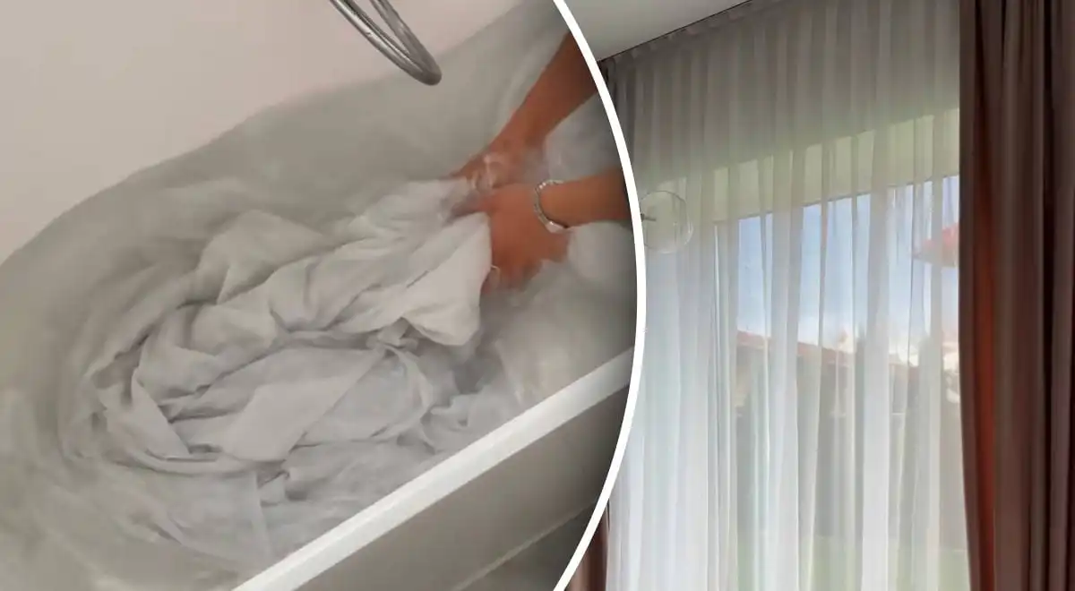 – Laat gordijnen vochtig opdrogen aan de rail; ze strijken zichzelf onder hun eigen gewicht.