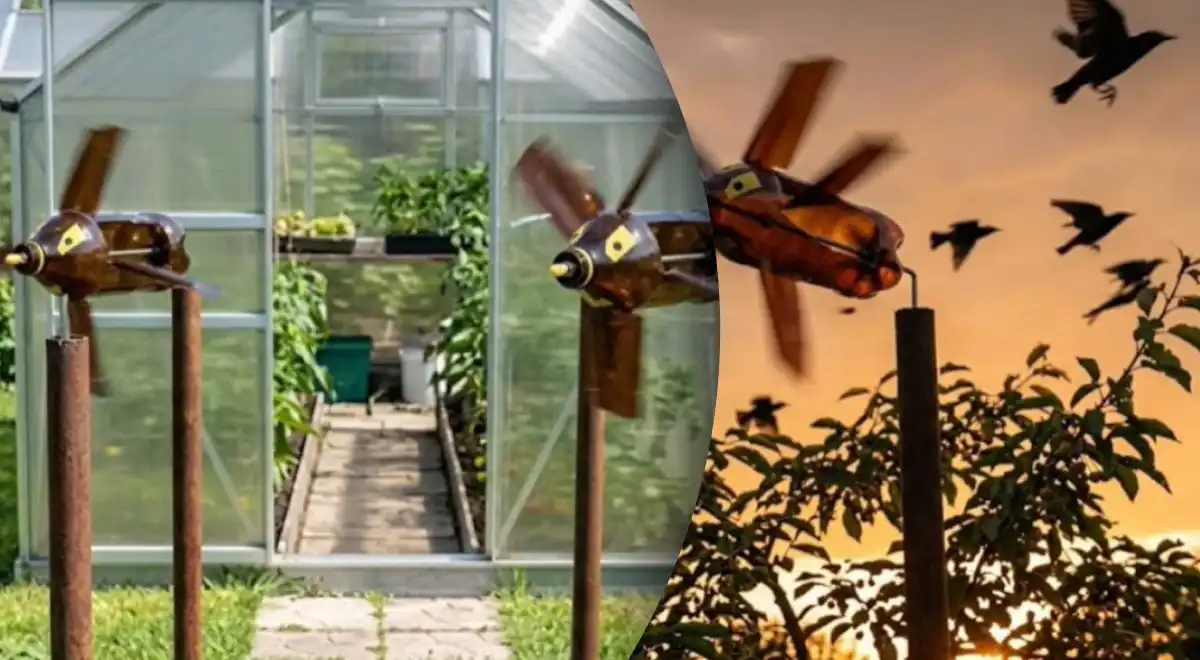 De meest effectieve manier om je tuin 24/7 te beschermen tegen zowel mollen als spreeuwen is een zelfgemaakte windmolen van een plastic fles en een metalen pijp. Hij werkt op windkracht, veroorzaakt trillingen in de grond die mollen verdrijven en schrikt vogels af met zijn beweging en ‘ogen’.