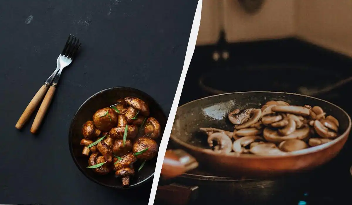 Zorg voor voldoende olie in een verhitte pan en bak de champignons op middelhoog vuur, niet op de allerhoogste stand.