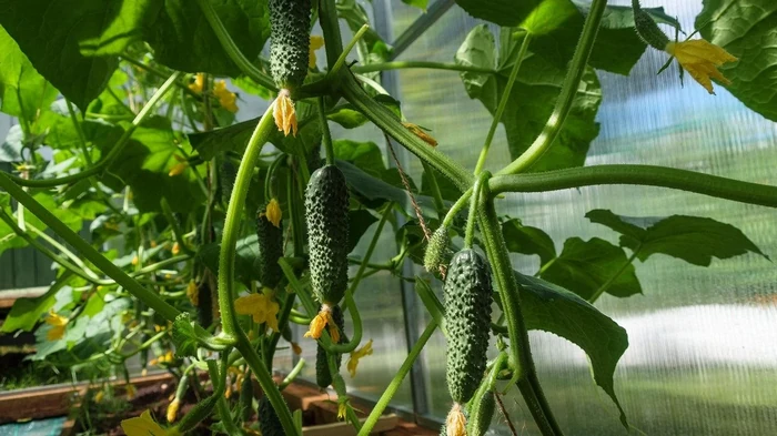 “Het geheim van een lange oogst? Oogst de komkommers op tijd, zelfs de kleine. Dit stimuleert de plant direct om nieuwe bloemen en vruchten aan te maken.”
