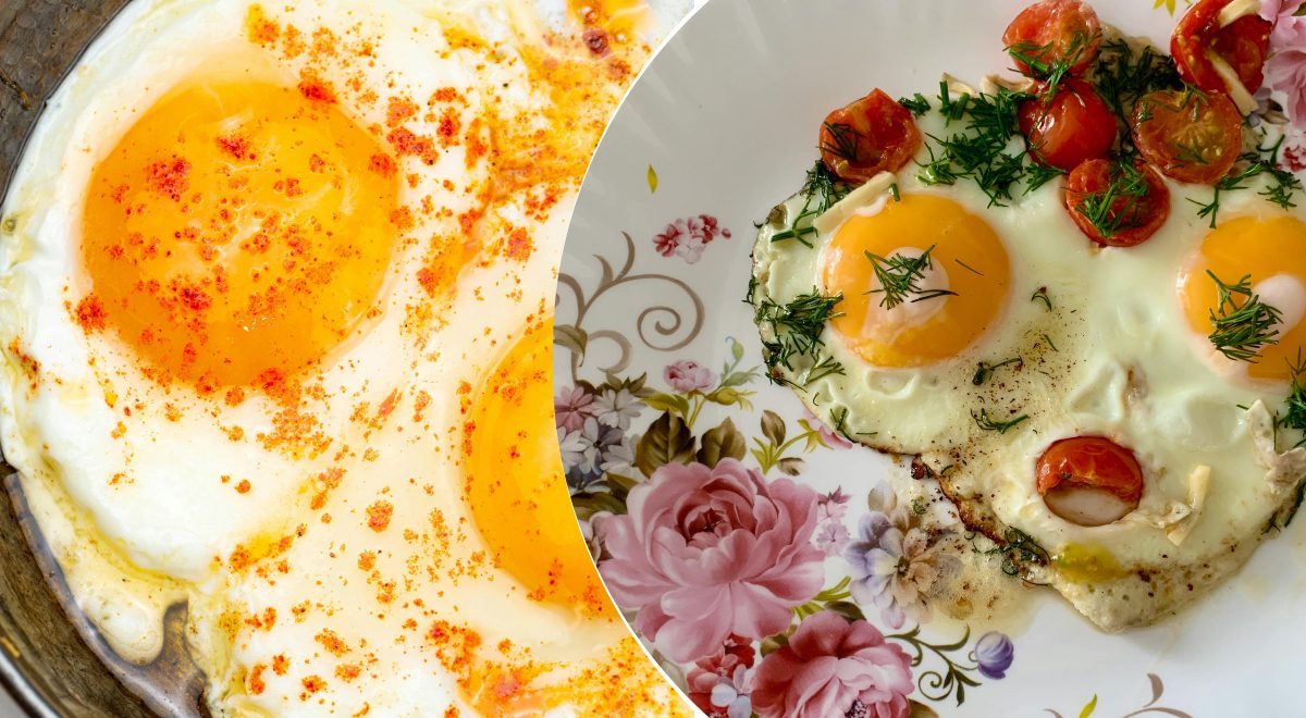 Haal de pan van het vuur zodra de eieren nog net iets nattig lijken; ze garen na in de restwarmte door.