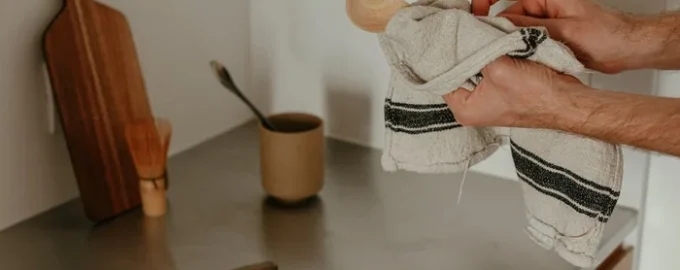 Voor een veilig schone keukenhanddoek is de combinatie van heet water (minimaal 60°C) en een bleekmiddel op zuurstofbasis de meest effectieve aanpak, vooral